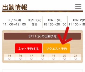 オフィシャルHPにリクエスト予約のボタン出現