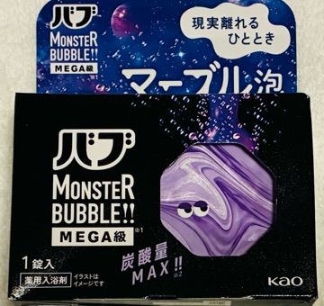 順調に朝の用事も済み 今からひと息いれたいと思います◎ 今朝は何にしようか迷いましたが 熱々の紅茶に柚子ジャムを ほんの少しだけ落としました  ふわりと香りが立っていい感じ  先日、ドラッグストアで見つけました  バブ MONSTER BUBBLE  「 MEGA級」の文字が すごく気になります  香りはラベンダーカクテル 湯の色はスペースバイオレット  通常の入浴剤と大きさを比べると かなりデッカいのがよく分かります☆ これはもう 直ぐお湯に入れてみましょう◎ お湯に入れるとシュワッと 結構パワフルな炭酸が出てきます   暫くすると段々青色が出てきました 全て解けるとすっごく綺麗な青色が出て モワモワした泡が雲の様で 地球の表面の様になりました  これ、写真で伝わりにくいけど めっちゃ綺麗な色で 思わず「わぁ  」と声が出ました  お湯に入ると 柔らかなラベンダーカクテルの香りが 優しく香って気持ち和らぎます  炭酸が結構効いているので お風呂上がりは暫くぽっかぽか さすがMEGA級  ギャラクシーな湯 インパクトは勿論のこと 癒しとしっかりとした温浴効果は バブやるなぁと改めて感心した 一品なのでした  今日もいい日になりますように