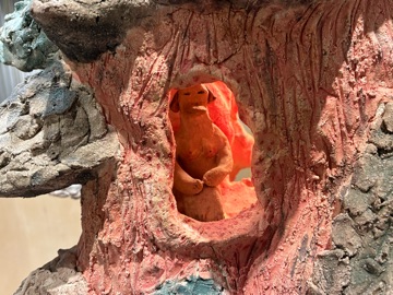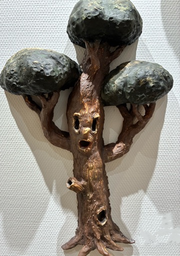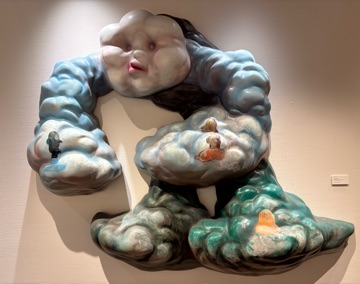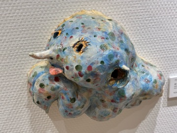 今朝も寒さと戦いながら 朝の用事を済ませました☆ 先程、熱い豆乳オレを淹れたので これから頂きます  この熱いのが お腹の底に沁み渡ります お休み中に行ってきました◎ 小出ナオキ展 「THE Long Way Out」 会場につくと真っ先に目に飛び込んできた なんともユーモラスなこの作品 もこもこの雲をイメージしています  140×170の作品でかなり大きいですが FRP(合成樹脂)を使っていて軽く ふわりと壁に掛かっておりました◎ FRPを使うアイデアは 若かりし頃にバイトしていた ディズニーランドのパレードの フロートから得たらしいです  会場のど真ん中に 存在感抜群の木がありました☆ 素材がFRPからセラミックに変わり 釜から出した時の 思いがけない作品の変化に魅力を感じ 新たな素材を使いはじめます◎ こちらの作品のテーマは 「永遠にいなくならない家族」 よく見ると、木の目の中や 木の上に小さなヒトが居ますね ここに登場するのは 実在する家族だけではなく 他界した家族が姿を変えて 雲のオバケやドクロなど異界の者達が 小出一家と共にここに居ます  これは、小出さんのお嬢さんが小さな頃 小出さんに色々話してくれたことを 絵にされていて お嬢さんの話の中にいた 7つのオバケのうちのひとつや 顔がある木など 小出さんが解釈された姿で 実現化されていました  こちらもお嬢さんが小さい頃 小出さんが赤ずきんちゃんの絵本を 読み聞かせていると 「オオカミが出て来ない 赤ずきんちゃんにして☆」 と、お嬢さんからお願いされた時の事を 作品にされました よく見ると、オオカミが ブロックの中に閉じ込められて 出て来れなくなっていますね◎ 小出さんの作品は 家族や身内の事をテーマにして ノスタルジックで優しい感じもありますが それだけではなく どこかエッジが効いていて 鑑賞している側のそれぞれの思想に 重ねて観ることが出来る そんな作品に感じました  久しぶりにアートを観にいきましたが とっても面白く 興味深いひと時になりました◎ また暖かくなった頃に 遠くに観に行こうかな  今週もよろしくお願いいたします