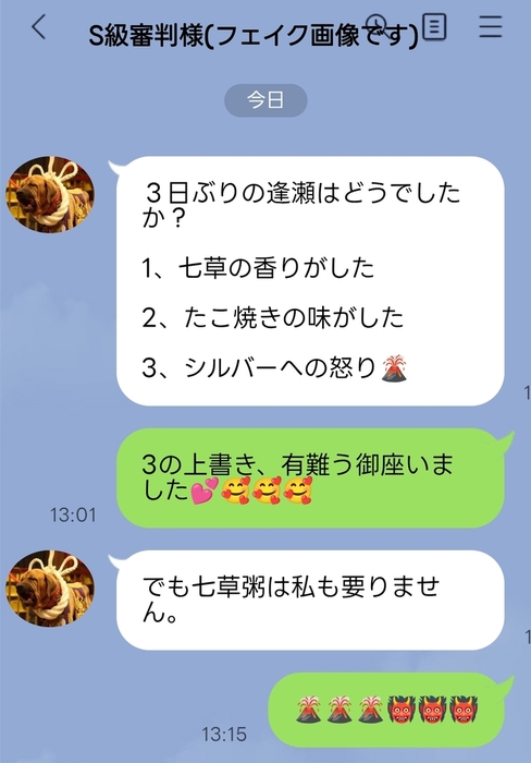 家族には例年不評の七草プレイの件に対して