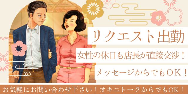 リクエスト出勤受付中! 女性にメッセージもしくはお店まで電話下さい! お客様のご都合に合わせて女性に直接交渉します! 清楚な雰囲気が魅力的な、黒髪むっちり系熟女が登場♪ 一見おしとやかで控えめな印象ながら、実はとってもご奉仕好きなドM体質♡ とろけるようなフェラは、まさに「ずっと舐めていられる」と評判! 尽くすのが大好きで、あなたの喜ぶ顔を見るのが何よりの幸せ…♪ 見た目は清楚、中身はエッチなギャップにゾクゾクすること間違いなし◎ 甘くて濃密なひとときを、どうぞお楽しみください。 ーーーーーーーーー 【移動手段:電車】 ーーーーーーーーー …